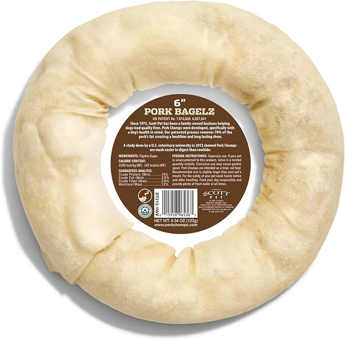 Pork Chomps Baked Pork Skin Dog Chew, 6-inch Bagel, 1 Count (Pack of 3)