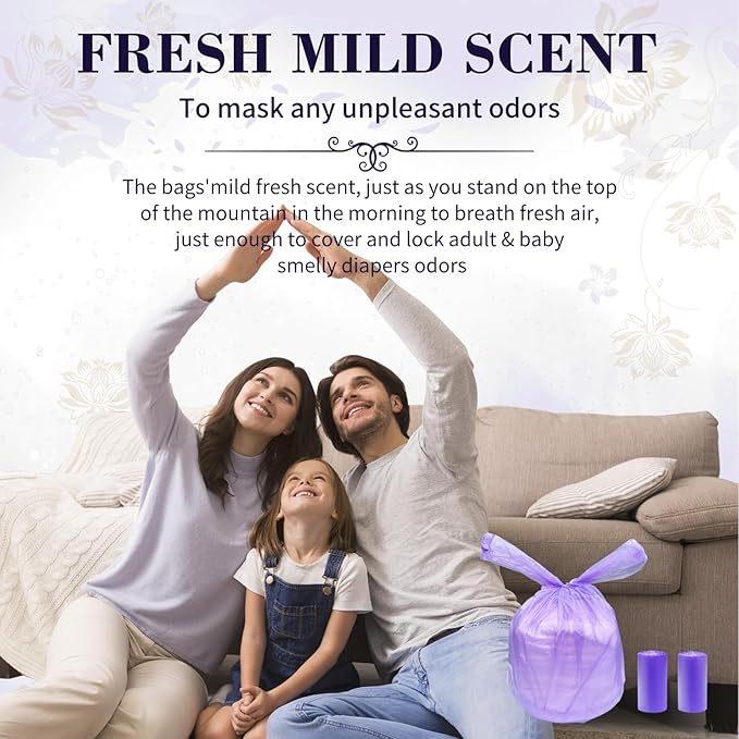 Large Adult Diaper Disposal Bags (18’’x23’’),96 Pcs, Scented, Elderly Waste Disposal, Baby Diapers Disposal Trash Bags, Sanitary Product Disposal at Home and Travel, Purple