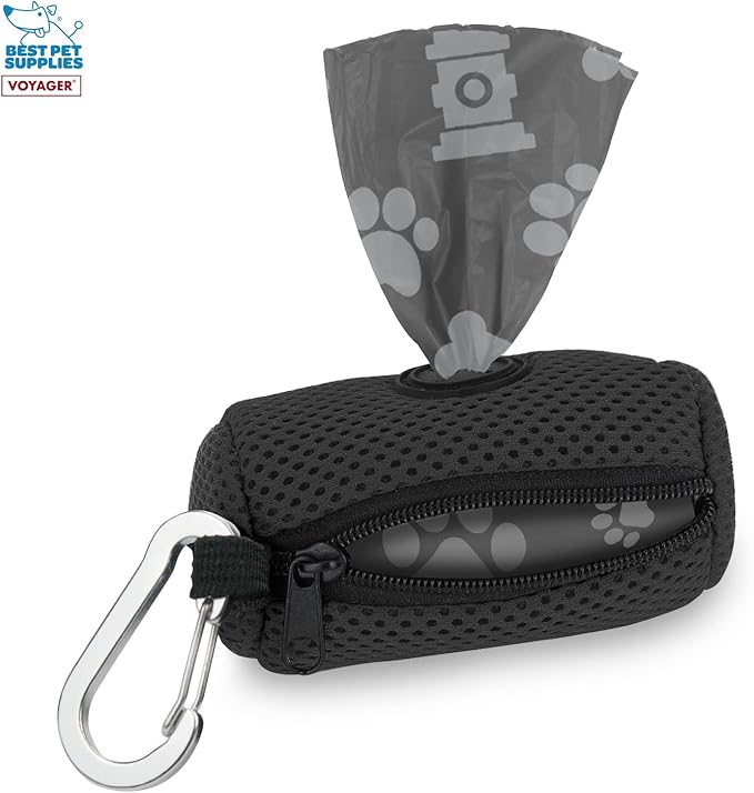Best Pet Supplies Dog Poop Bag Holder Leash Attachment with 15 Bags, Black, Reusable Mesh Dispenser Pouch for Travel, Walking, Park, and Outdoor Use, Soft and Durable with Clip-On (Pack of 2)