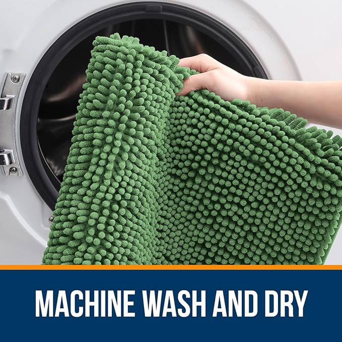OLANLY Bathroom Rugs 47x20, Extra Soft Absorbent Chenille Bath Rugs, Rubber Backing Quick Dry, Machine Washable Bath Mats for Bathroom Floor, Tub and Shower, Home Decor Accessories, Olive Green