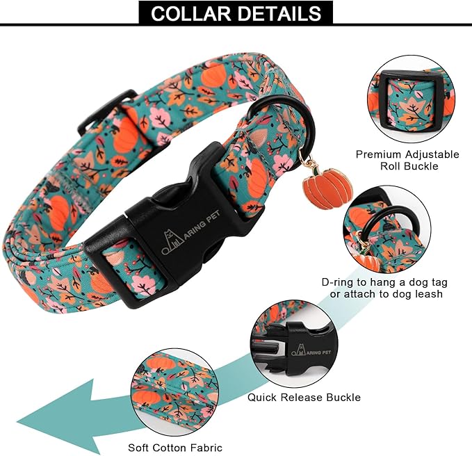 ARING PET Fall Dog Collars, Cute Autumn Pumpkin Maple Leaves Pet Collar with Quick Release Buckle for Small Medium Large Girl Boy Dogs-M Deep Color