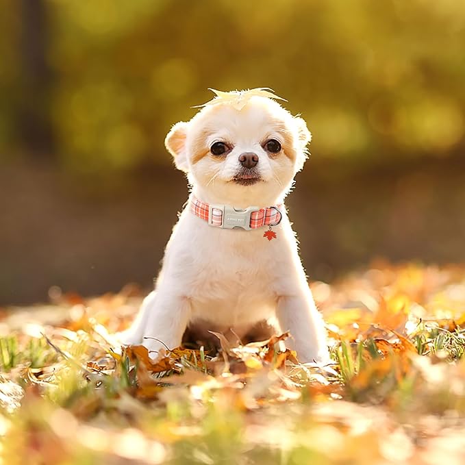 ARING PET Fall Dog Collars, Cute Orange White Plaid Halloween Autumn Pumpkin Maple Leaves Pet Collar with Quick Release Buckle for Small Medium Large Girl Boy Dogs-XS