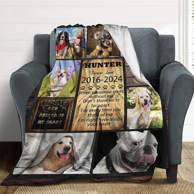 - đăIn Memory of Loved PetsăCreate a lasting memory with memorial photos, Lasting tribute to your beloved pet, This rememberance throw blanket is the perfect sympathy gift for dog mom and dog lovers who lost a furry baby, Personalized memorial blankets are perfect dog loss gift, present of sympathy, bereavement gift, remembrance gifts for loss of cat, it will hugs for the heart warm up when your family or friends are in the grief of losing pets.