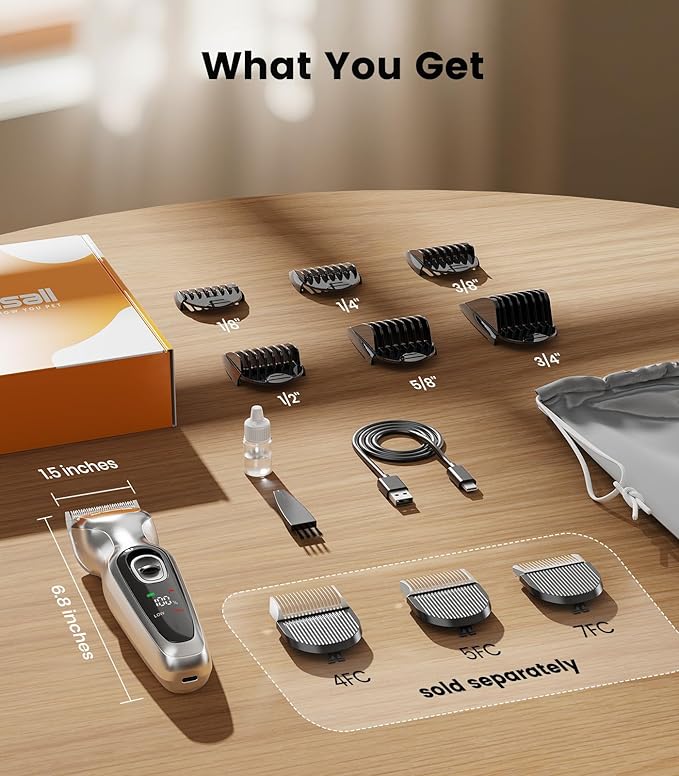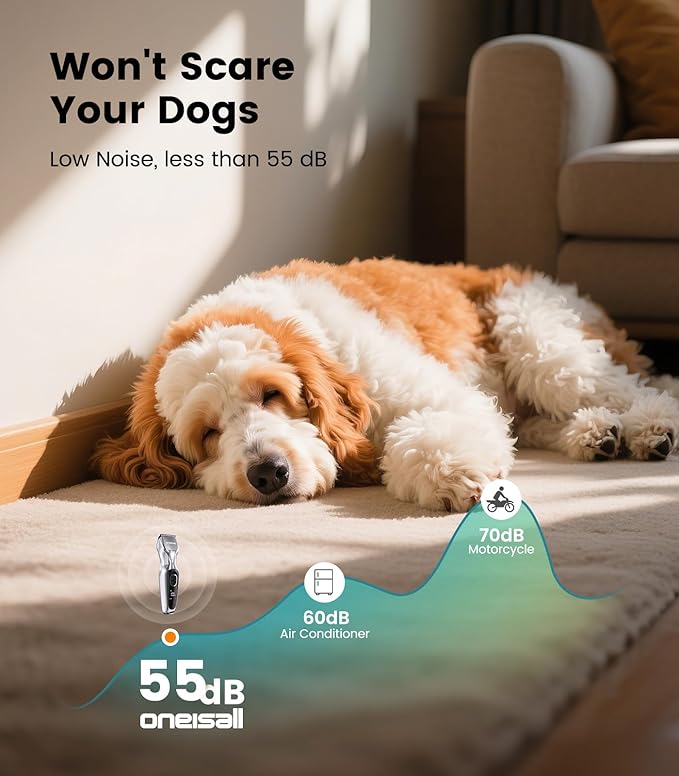 oneisall Dog Clippers for Grooming Thick Hair, Low Noise Cordless Dog Shavers, 2-Speed Pet Hair Trimmer Grooming Kit for Home Groomer