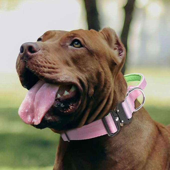 - Heavy Duty Quick Release Dog Collar. Well made and high guality genuine polyester material, the wide dog collar is thick, tough yet comfortable, and the soft padded interior provides a comfortable wearing and avoid your dog from rubbing against the skin, durability to take on all types of adventures and weather. When you receive and feel the collar you will know that it was made with quality and care