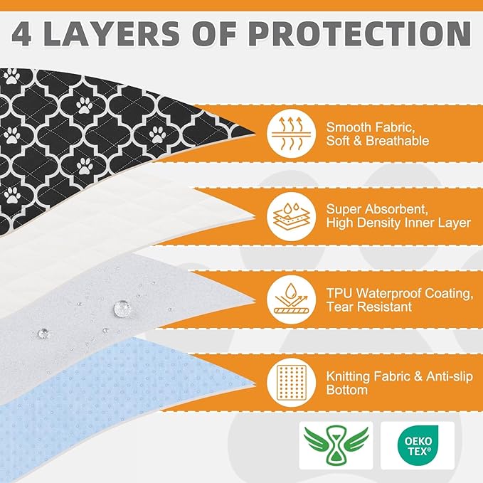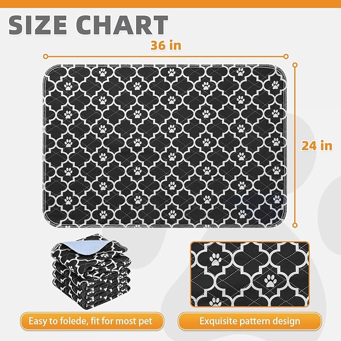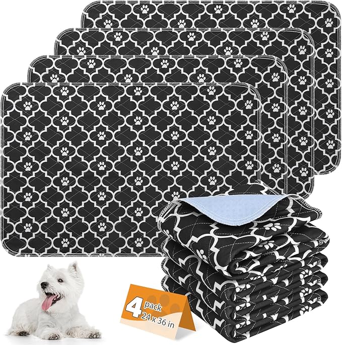 KOOLTAIL Washable Pee Pads for Dogs, 4 Packs Super Absorbent Leakproof & Non-Slip Dog Pee Pad Large, Reusable Puppy Training Pads Waterproof, Pet Mat Rug for Whelping, Floor, Crate, Car, Cats 24"x36"