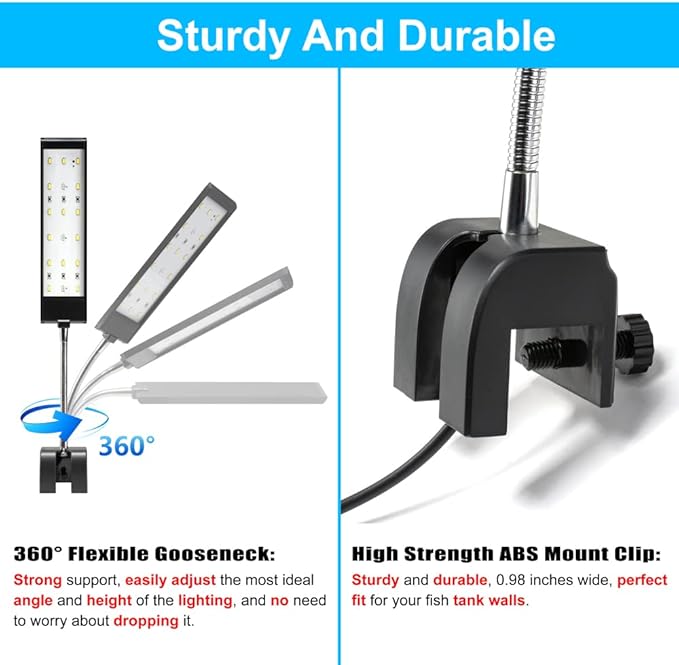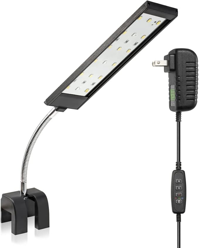 Aquarium Light Small LED Clip Light for Fish Tank 7W with Timer&Dimmer, 1 Yr Warranty