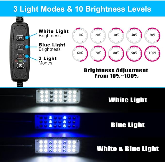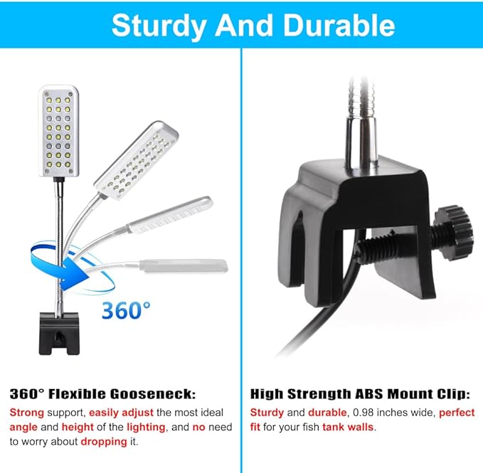 Aquarium Light Small LED Clip Light for Fish Tank 1.5W with Timer&Dimmer, 1 Yr Warranty