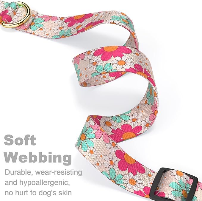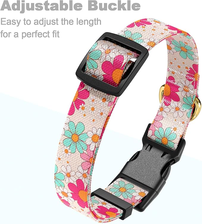 Rnivvi Dog Collar for Large Dogs, Cute Heavy Duty Adjustable Puppy Collar with Quick Release Buckle for Girl & Female, Pet Accessories for Walking Running, L Length 1" Width, Hand Drawn Flowers