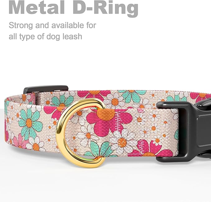 Rnivvi Dog Collar for Medium Dogs, Cute Heavy Duty Adjustable Puppy Collar with Quick Release Buckle for Girl & Female, Pet Accessories for Walking Running, M Length 1" Width, Hand Drawn Flowers