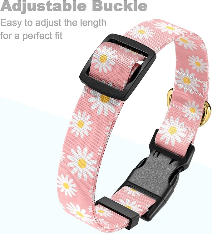Rnivvi Dog Collar for Small Dogs, Cute Heavy Duty Adjustable Puppy Collar with Quick Release Buckle for Girl & Female, Pet Accessories for Walking Running, XS Length 5/8" Width, Pink Daisy Flower
