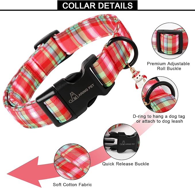 ARING PET Christmas Dog Collar-Cute Red Green Plaid Dog Collars, Adjustable Christmas Pet Collars Puppy Collar with Quick Release Buckle for Girl&Boy Dogs