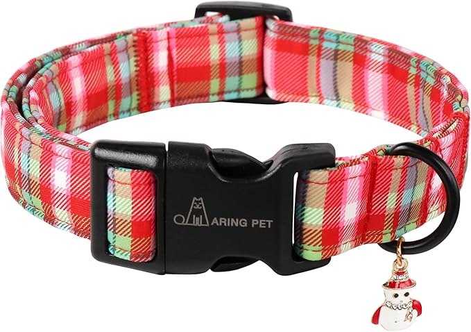 ARING PET Christmas Dog Collar-Cute Red Green Plaid Dog Collars, Adjustable Christmas Pet Collars Puppy Collar with Quick Release Buckle for Girl&Boy Dogs