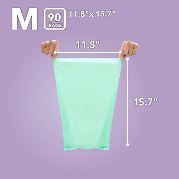 BOS Odor-Sealing Dog Poop Bags for Pet Waste - Disposal Doggy Bags - Scent & Smell Free (90Bags) [Size: M, Color: Light Mint Green] (Pack of 2)