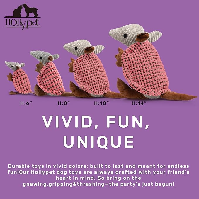 About This Unique Sound - Hollypet Armadillo Squeak Toys (except 6 inch) make a sound that's not high pitched, but... Read more