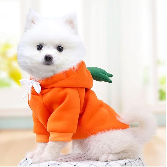 Happy Dog Hoodies - Funny Dog Clothes for Small Dogs & Cats - Hooded Puppy Sweatshirt Coat - Winter & Easter Outfit - Carrot Costume for Kitten, Chihuahua, Pomeranian, Yorkie (Orange, Large)