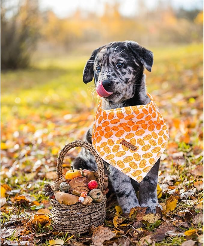 Lionheart Glory Fall Dog Bandana - Halloween Pumpkin Washable Soft Dog Scarf Adjustable for Small Dogs