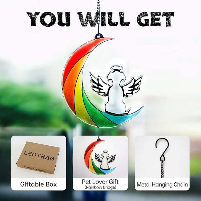 - 【Pet Memorial Gifts for Dogs】: As a keepsake it is a wonderful reminder of your dog, your best friend. Hang it in the window, on the wall, in the garden, in your pet's favorite place or near your pet's photo. As the sun sets through the stained glass gift, blooming with colorful light, I hope you'll always remember that even though time has passed, I still love you as much as ever!