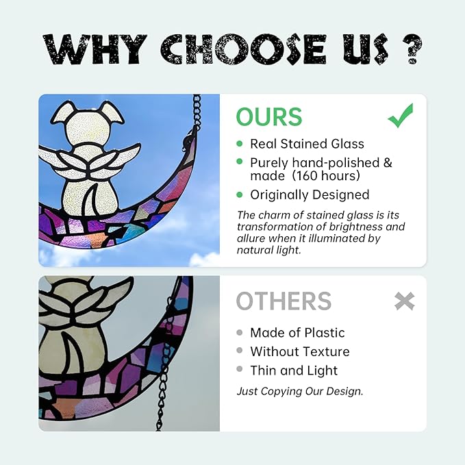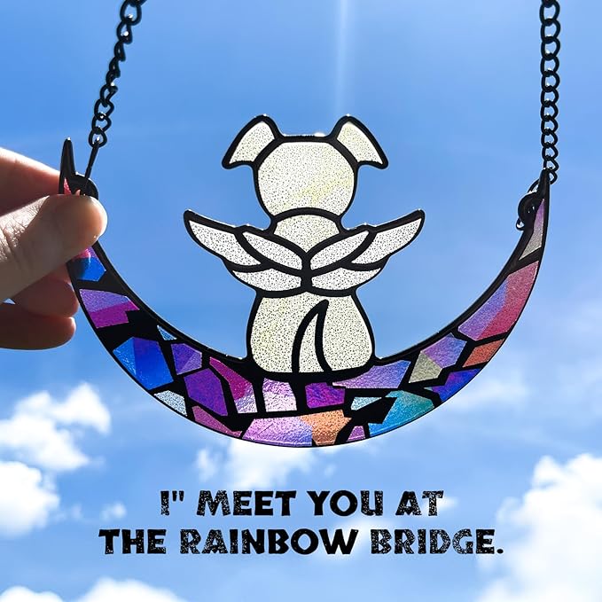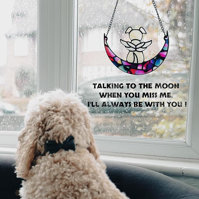 - 【Pet Memorial Gifts for Dogs】: As a keepsake it is a wonderful reminder of your dog, your best friend. Hang it in the window, on the wall, in the garden, in your pet's favorite place or near your pet's photo. As the sun sets through the stained glass gift, blooming with colorful light, I hope you'll always remember that even though time has passed, I still love you as much as ever!
