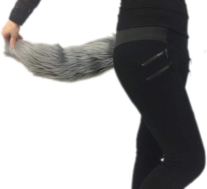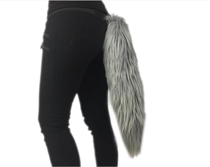 Long Faux Fur Animal Luxury Tail, Cosplay, Anime Lover, Costume Dress Up Pet Play Furry Super Soft Accessory (Silver Gray, 20")
