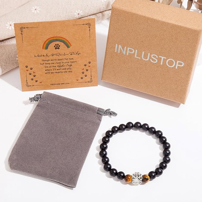- Ready to Gifts: This memorial pet bracelet set come with a gifts box, a velvet bag, a rainbow bridge card with sympathy words, and a dog paw bracelet, it is ready to gifts directly.