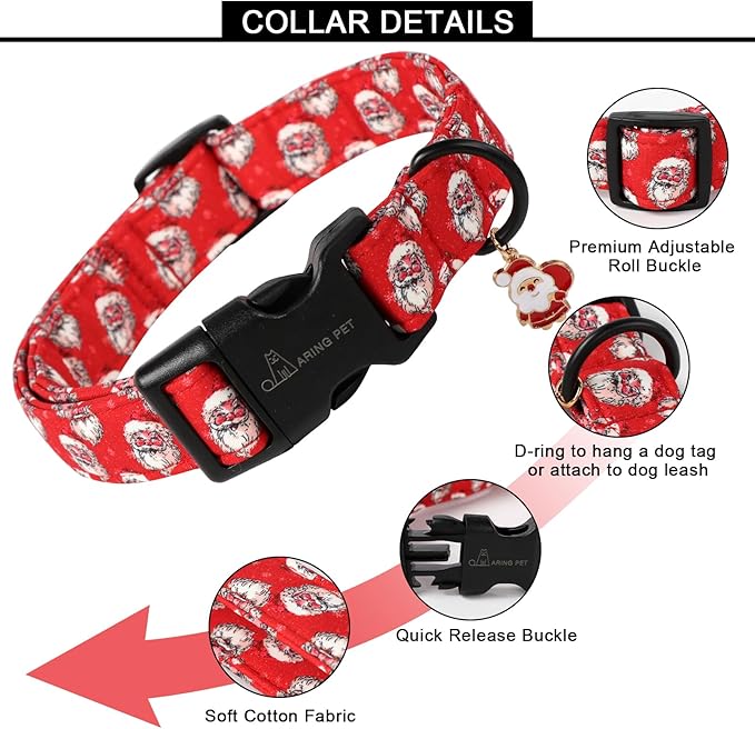 ARING PET Christmas Dog Collar-Cute Red Santa Claus Dog Collars, Adjustable Christmas Pet Collars Puppy Collar with Quick Release Buckle for Girl&Boy Dogs