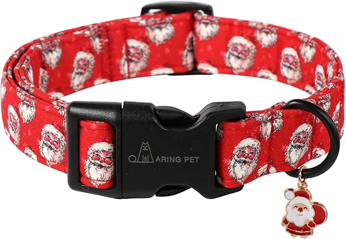 ARING PET Christmas Dog Collar-Cute Red Santa Claus Dog Collars, Adjustable Christmas Pet Collars Puppy Collar with Quick Release Buckle for Girl&Boy Dogs