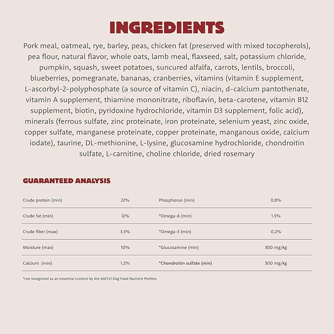 Farmstead Feast, Dry Dog Food, Pork Meal and Lamb Meal Large Breed Adult Recipe with Grains, 25 lb Bag