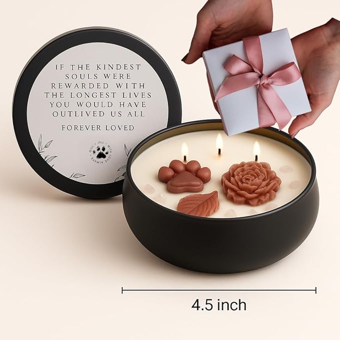 - COMFORTING MEMORIAL AROMA – Infused with clementine, jasmine, and amber musk, this candle creates a soothing ambiance of warmth and calm, making it one of the most thoughtful pet memorial gifts for dogs.