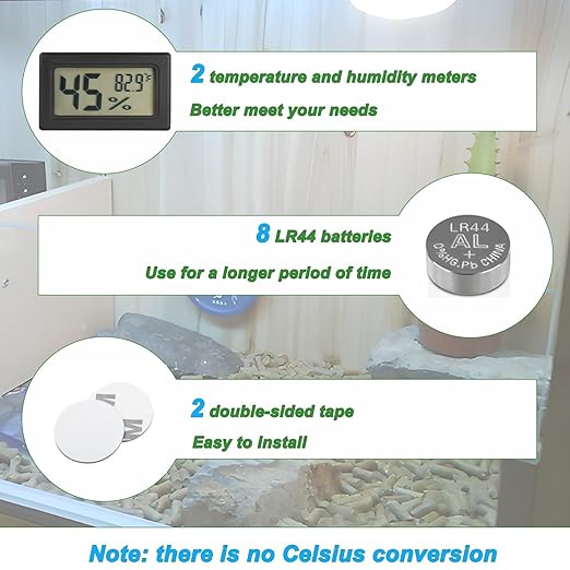 About This 【High-Precision】The thermometer for reptile tank can simultaneously detect humidity and temperature,10s response time, temperature accuracy:±1℉,Humidity accuracy:±5%.Helping you quickly... Read more