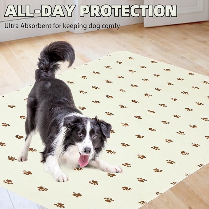 PUPTECK Washable Pee Pads for Dogs - Waterproof Reusable Puppy Potty Training Pads Whelping Mat - Fast Absorption Non-Slip Pet Food Feeding Mat (Beige, 48x60 Inch (Pack of 2))
