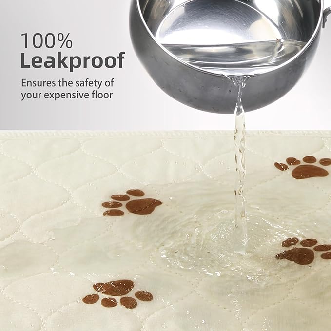 PUPTECK Washable Pee Pads for Dogs - Waterproof Reusable Puppy Potty Training Pads Whelping Mat - Fast Absorption Non-Slip Pet Food Feeding Mat (Beige, 34x36 Inch (Pack of 2))