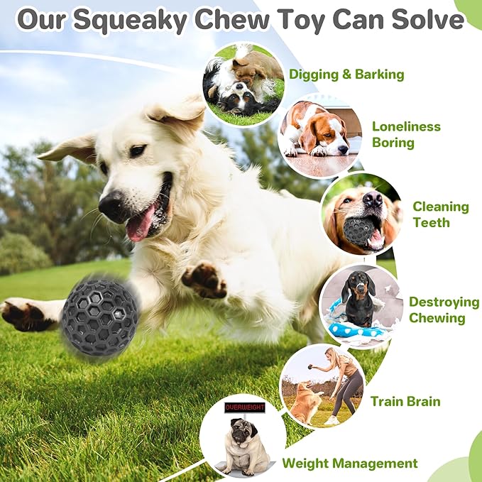 Interactive Squeaky Dog Balls, Dog Toys for Aggressive Chewers Large Breed for Relieving Anxiety, Tough Dog Chew Toys Balls for Aggressive Chewers, Outdoor Squeaky Dog Toys for Large Dogs