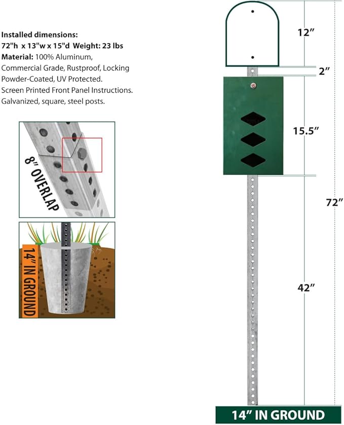- 🌱 Same heavy-duty square telescoping aluminum post specified by municipalities.