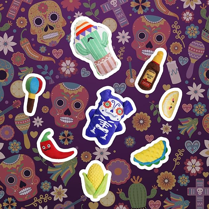 About This Unique Mexican-Themed Toy Set – This dog toy bundle includes 8 adorable plush toys inspired by Mexican culture:... Read more