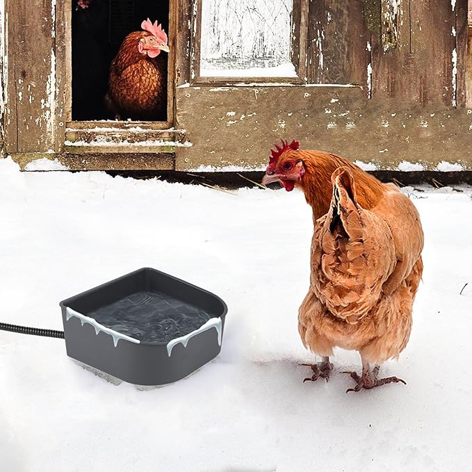 NAMSAN Small Heated Pet Bowl for Cats Rabbits, Outdoor and Indoor, 1 L Heated Water Bowl for Chicken Birds Ice Free, Thermal-Bowl for Dog Cage, Hanging Kennel Dish, Self-Assembly