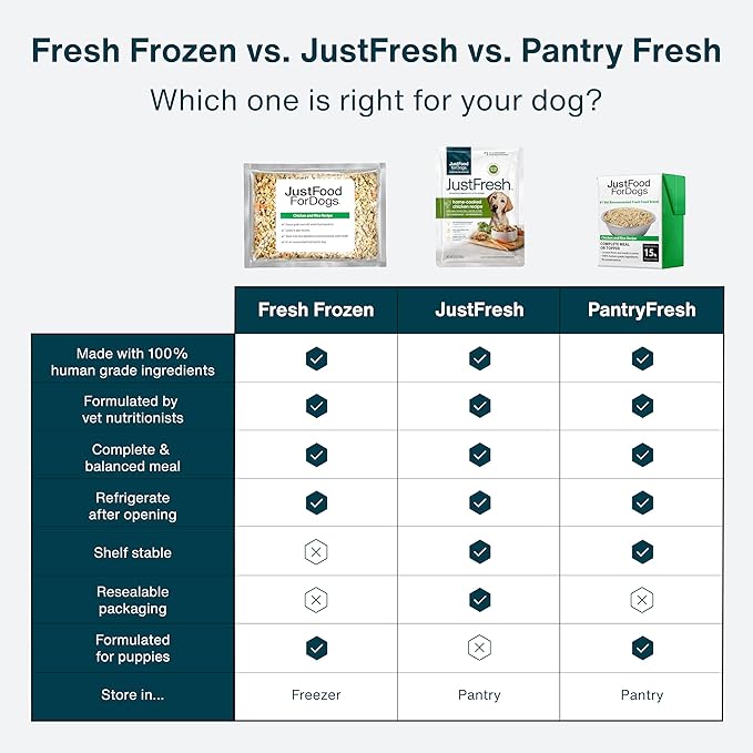 - USE AS A FULL MEAL OR DOG FOOD TOPPER FOR PICKY EATERS: While JustFresh is formulated as a complete and balanced meal, our soft dog food can also be used as dog food toppers for dry food for those picky eaters