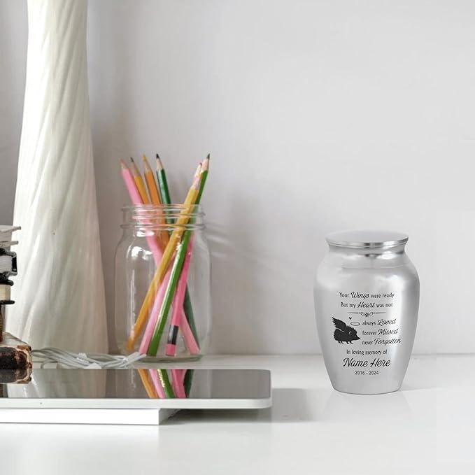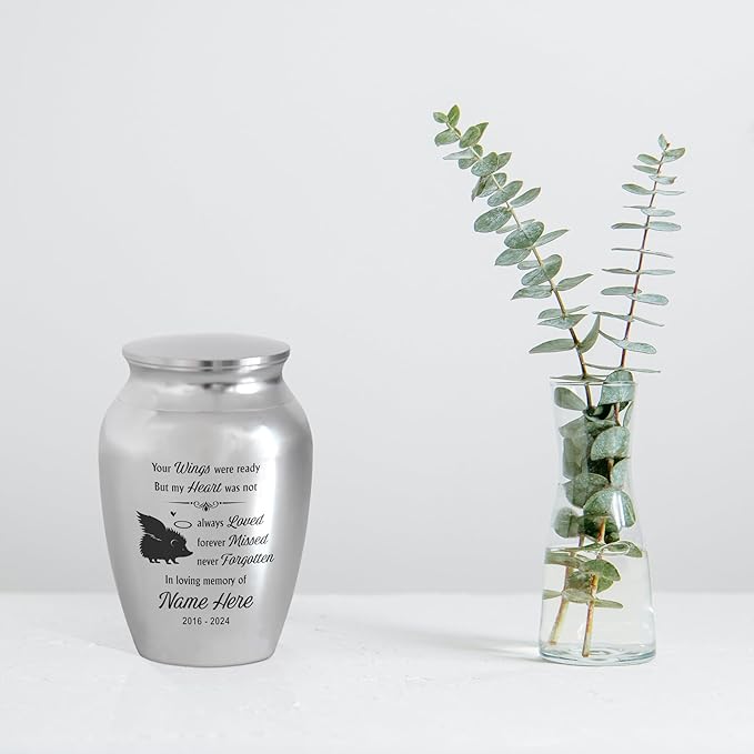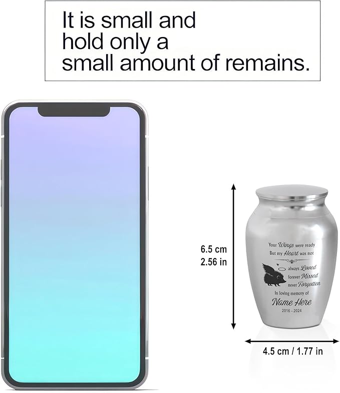 Artsy Woodsy Personalized Hedgehog Pet Memorial Cremation Mini Urn, Decorative Keepsake Small Urns for Ashes 2.56 inch, Remembrance Gifts for Pet Lovers in Loving Memory (04, 2.56x1.77)