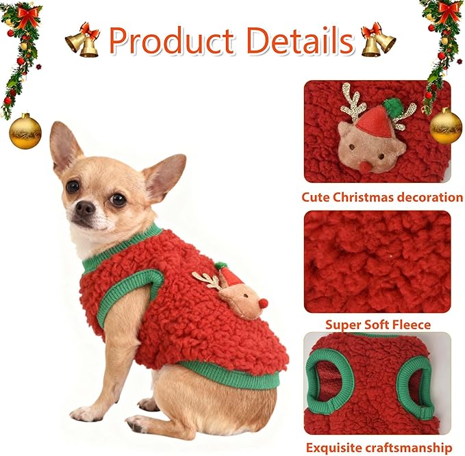 FLAdorepet 3 Packs Christmas Teacup Dog Cat XXS Clothes for Chihuahua Yorkie,Winter Warm Fleece Puppy Pet Clothes Sweater Shirt Vest for Mini Newborn Extra Small Dogs (Christmas, XXXS(Pet Under 1LBS))