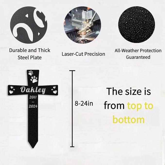 - Durable Metal for Outdoor Use:Crafted from high-quality metal, this pet memorial plaque cemetery stake is designed to withstand all weather conditions. Whether placed in your yard or garden, it remains a lasting tribute to your pet.