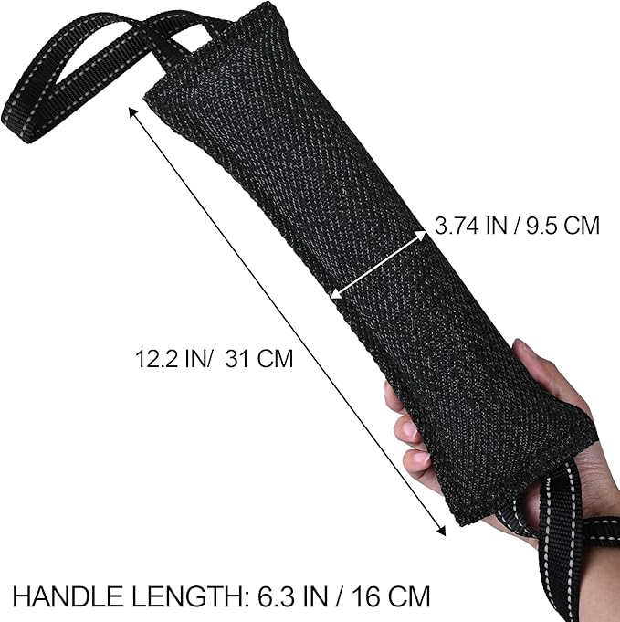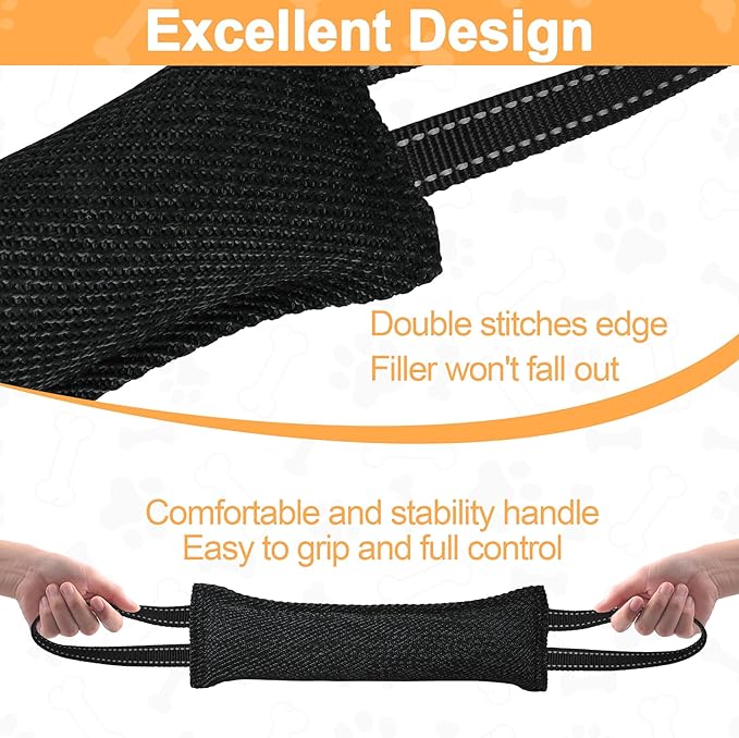 Dog Tug Toy Dog Bite Pillow Pull Toy with 2 Strong Handles Perfect for Tug of War, Puppy Interactive Play, Tear Resistant Bite Training Toys for Small Medium Large Dogs (Dark Black-Line)