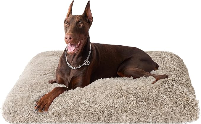EHEYCIGA Fluffy XXL Dog Crate Pad, Plush Faux Fur Dog Bed for Extra Large Dogs, Calming Anti Anxiety XXL Bed, Washable Soft Warm Crate Mat with Non-Slip Bottom, Taupe