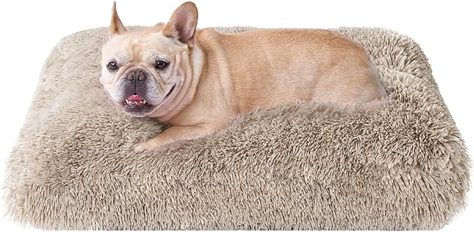 EHEYCIGA Fluffy Dog Crate Bed for Medium Dogs, Plush Faux Fur Pet Crate Pad, Calming Anti Anxiety Medium Pet Bed, Washable Soft Warm Dog Mat with Non-Slip Bottom, Taupe