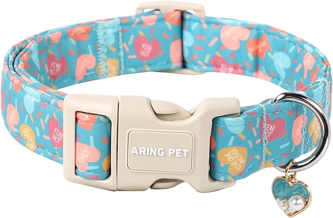 ARING PET Valentine's Day Dog Collar-Cute Blue Heart Dog Collars, Adjustable Valentine Heart Pet Collars Puppy Collar with Quick Release Buckle for Girl&Boy Dogs