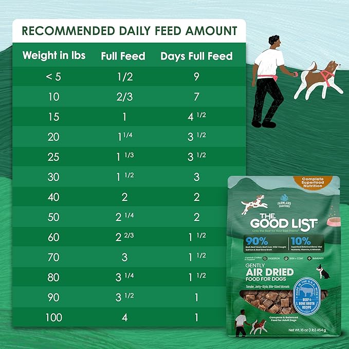 Farmland Traditions The Good List Air-Dried Dog Food, Premium Beef & Bone Broth for Dogs, Protein Rich & Grain-Free Nutrition, 1 Pound Bag