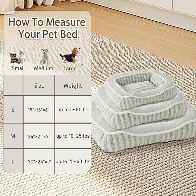 Dog Bed for Extra Small Dogs Breeds,Cat Bed,Puppy Kennel Bed with Pillow,Washable Deluxe Plush Dog Crate Beds,Comfy Durable Rectangular Pet Sleeping Bed & Non-Slip Bottom,Grey (19"X16")