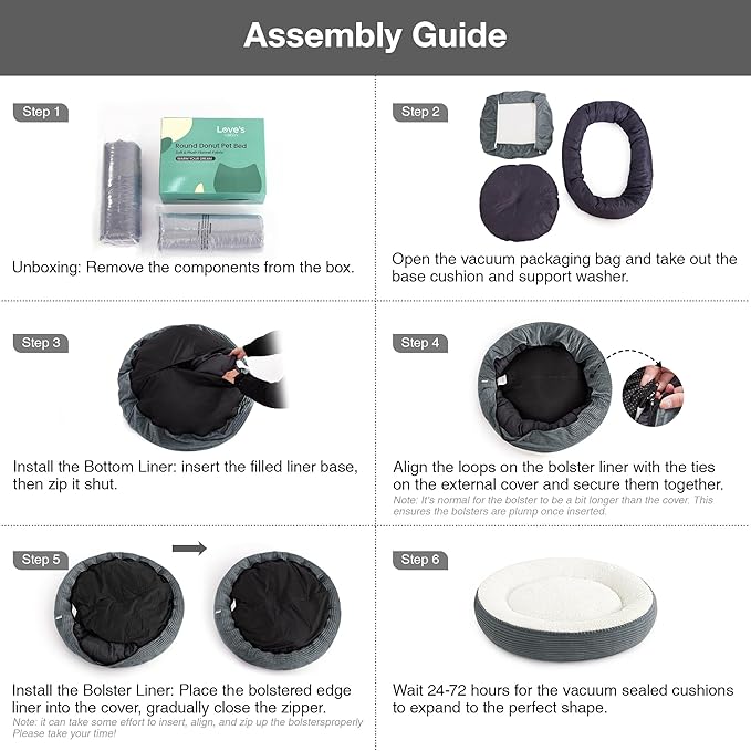 Love's cabin Round Donut Cat and Dog Cushion Bed, 36in Pet Bed for Medium or Large Dogs, Anti-Slip Water-Resistant Bottom, Super Soft Durable Pet beds, Washable Cat Bed Stripe Bluish Grey