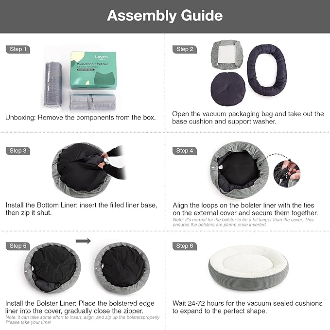 Love's cabin Round Donut Cat and Dog Cushion Bed, 36in Pet Bed for Cats or Small Dogs, Anti-Slip Water-Resistant Bottom, Super Soft Durable Fabric Pet beds, Washable Cat Dog Bed Stripe Grey