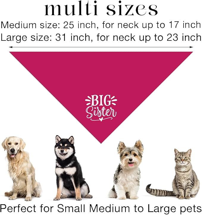 Big Sister Dog Bandana, Deep Pink Dogs Scarf Accessories, Pet Triangle Scarf, Pet Bandana for Large Dogs, Baby Announcement Dog Bandanas (L)