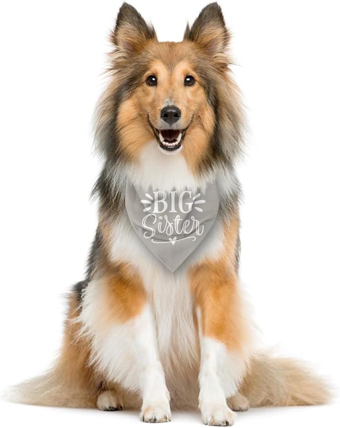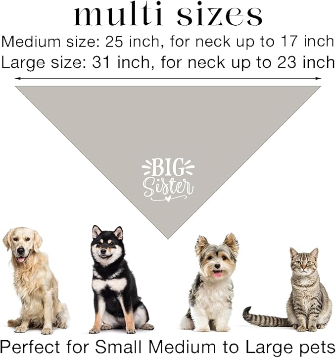 Big Sister Dog Bandanas, Light Gray Dog Bandana, Pet Triangle Scarf Accessories, Pet Bandanas for Large Dogs, Baby Announcement Dogs Bandana (L)